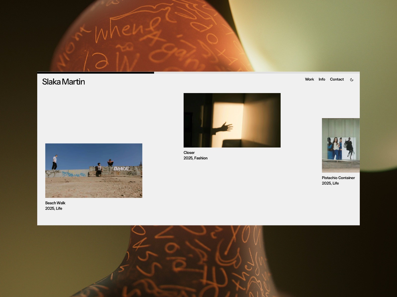 Slaka Martin is a Framer portfolio template designed with a horizontal scroll layout, featuring smooth animations and interactive details.